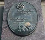 Lancaster and the moon emerging from the clouds. Recorded in bronze at the Hobsonville Settlers Cemetery.